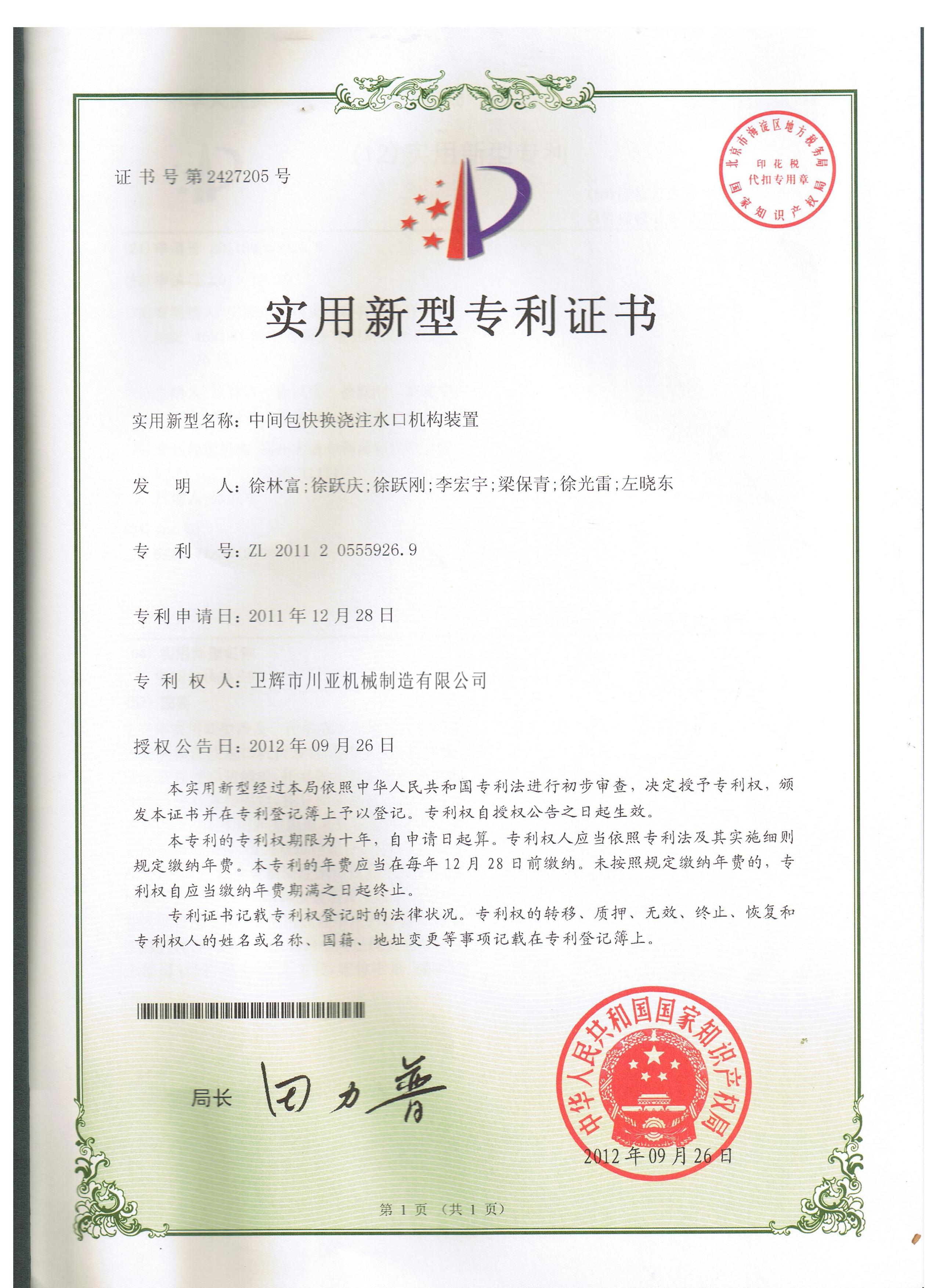 關(guān)于我們       衛(wèi)輝市川亞冶金設(shè)備制造有限公司是一家專業(yè)針對冶金控流設(shè)備、煉鋼連鑄配件及配套耐火材料進行研發(fā)、設(shè)計、生產(chǎn)、銷售于一體的民營企業(yè)。企業(yè)位于河南省衛(wèi)輝市產(chǎn)業(yè)集聚區(qū)內(nèi),占地面積141200平方米,目前廠區(qū)設(shè)置有… 更多>>